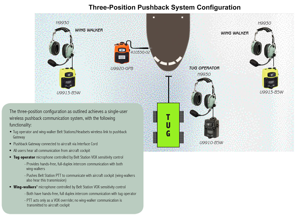 Komunikasi ramp di bandara yang sibuk, Sangatlah sulit. Dengan kebisingan mesin dari semua jenis kendaraan layanan, dan deru mesin jet, sangat menyulitkan ground suport Crew untuk berkomunikasi satu sama lain dengan baik. Sistem Komunikasi Headset David Clark meningkatkan komunikasi dan memberikan perlindungan pendengaran dari kebisingan bagi ground support crew personel. System ini mampu menghasilkan operasi ramp yang lebih efisien, berkontribusi pada waktu penyelesaian yang lebih cepat di Gate, dan meningkatkan keselamatan kru darat dan penumpang.